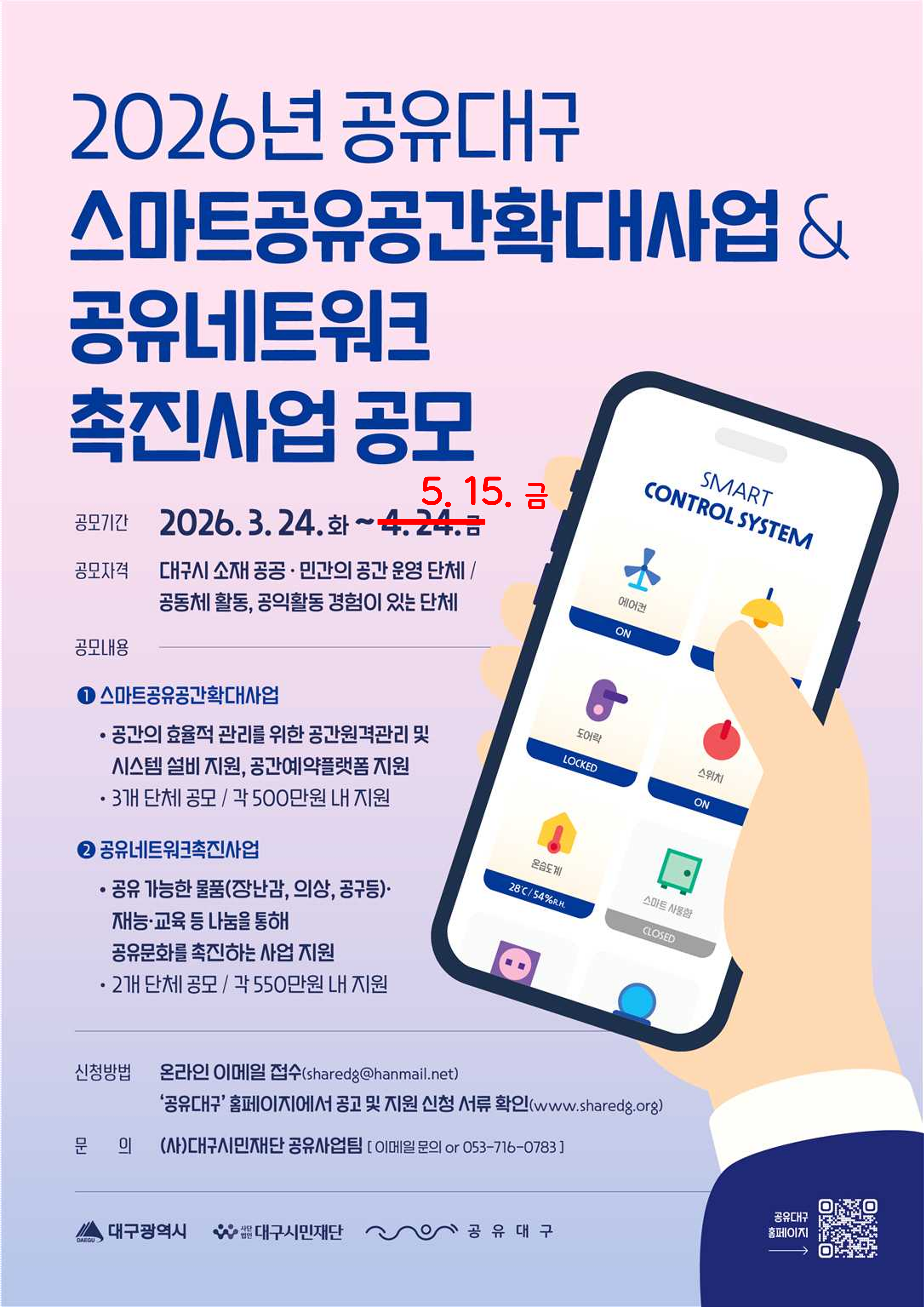 2026년 스마트 공유공간 확대 사업 및 공유네트워크 촉진 사업 공모